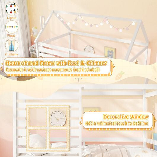Twin Size Wooden Platform House Bed with Trundle and Roof-Grey
